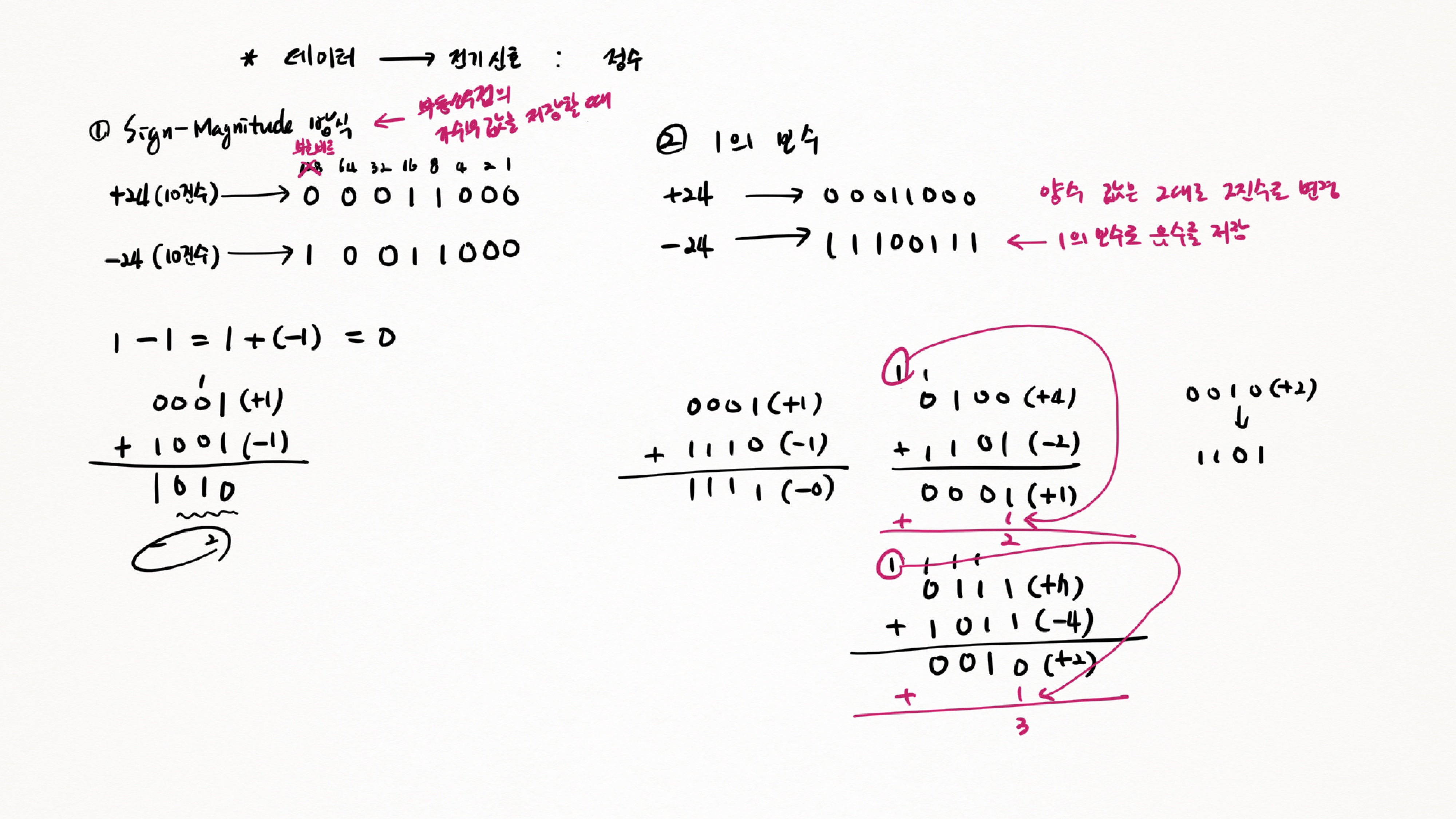 0001(+1) + 1001(-1) = 1010 (-2) <-- 계산 결과가 옳지 않다.