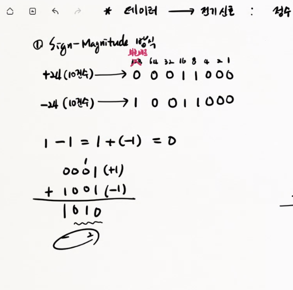- 빼기를 처리하는 컴퓨팅 회로를 별도로 설계해야 하므로 하드웨어가 복잡해진다.