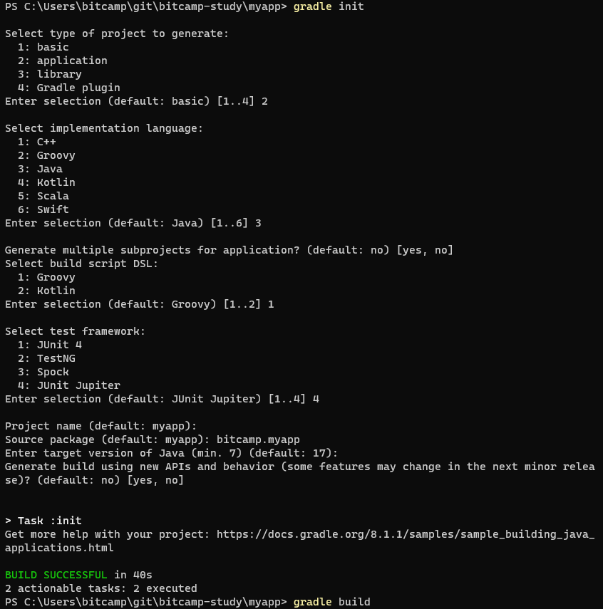 gradle이 성공하였다면 buid.gradle이 myapp에 생성되었을 것이다.