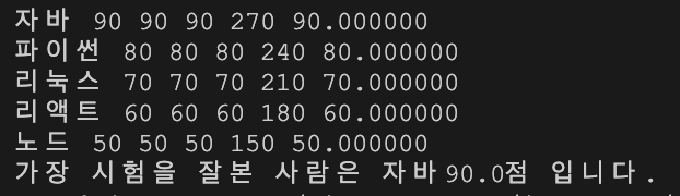 시험을 가장 잘본 사람과 평균 점수를 출력할 수있다.