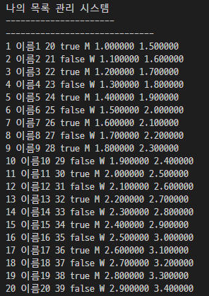 입력이 완료되면 입력된 목록을 다시 출력한다.