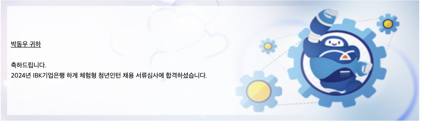 이번 IBK 기업은행 청년인턴 서류 합격입니다 ~